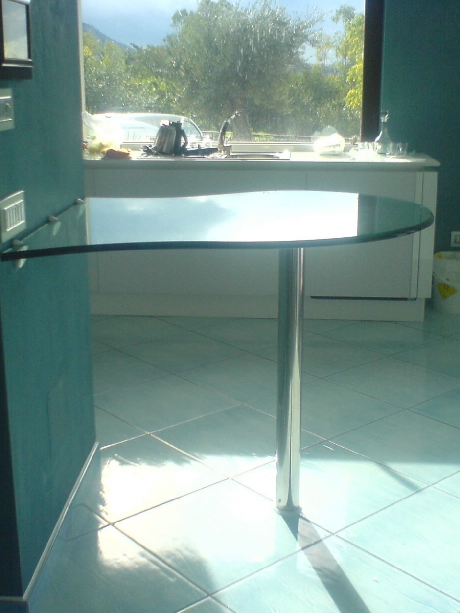 Si realizzano tavoli, vetrine, porta-tv, ingressi in cristallo con la tecnica della saldatura. Gli elementi di arredo possono prevedere parti decorate con incisioni e sabbiature, l'inserimento di parti in legno, elementi girevoli. Tutto l'arredo viene realizzato sulle misure richieste dal cliente.